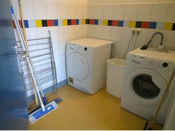 Er is één grote sanitaire ruimte die geschikt is voor rolstoelgebruikers en het gebruik van een douche-badwagen. Er is een wasmachine en een wasdroger in de bungalow.