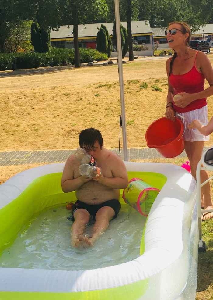 En wat doen helden tijdens een hittegolf? Juist. Een vooral geen kinderachtig watergevecht houden! Hele emmers water werden omgekeerd op hoofden, waterpistooltjes wierpen krachtige stralen af (zelfs de fotograaf moest het verduren) en natuurlijk speelden er kinderen gewoon lekker met lege PET-flessen in een pierenpadje. Lachen, gieren, brullen: één groot waterfestijn!