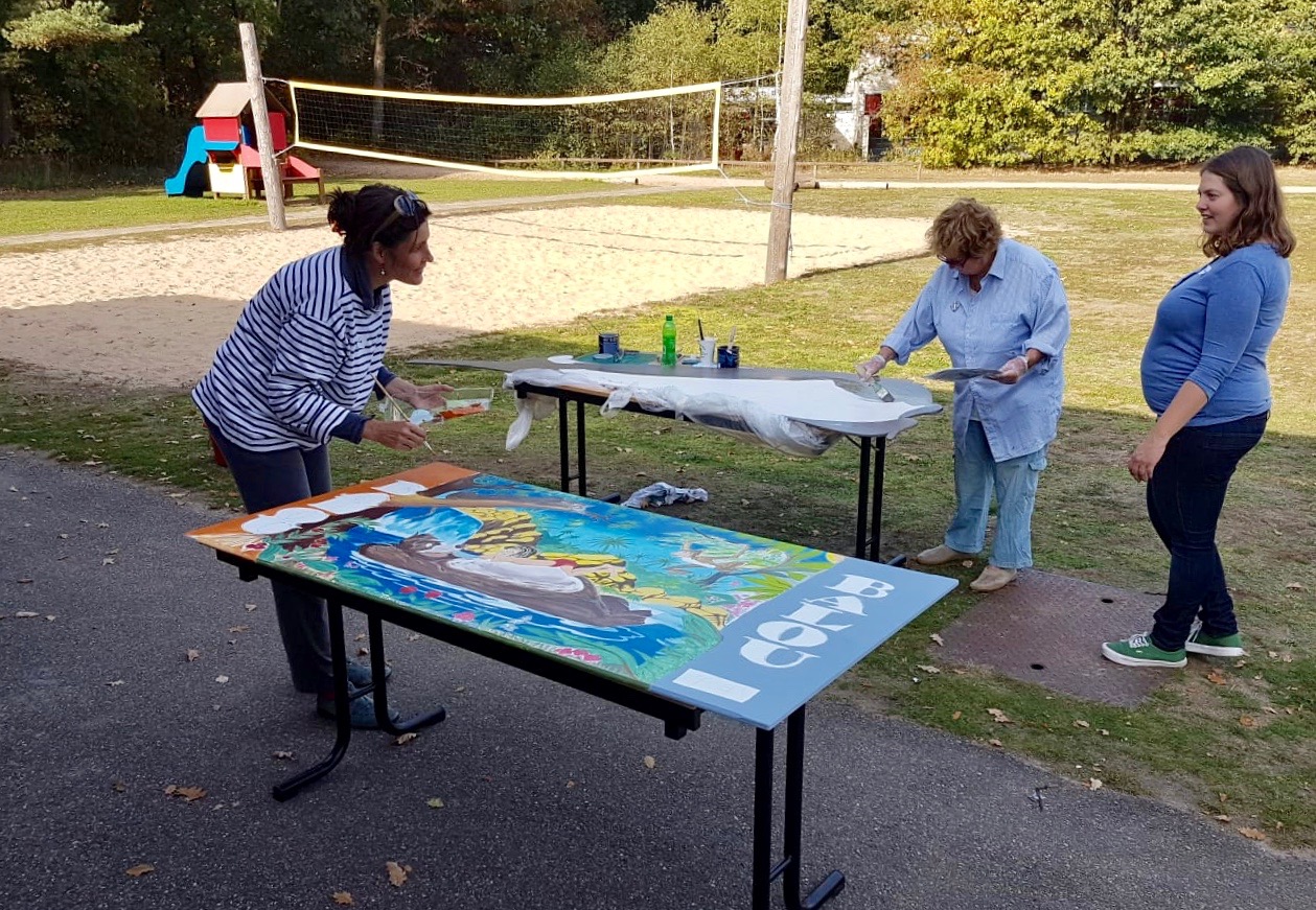 Annemarie Brand van de Arnhemse Soroptimisten benoemt de voordelen van haar club: “Het leuke van zo’n grote groep vrouwen is dat iedereen zijn steentje kan bijdragen vanuit zijn expertise. Ook uit de Arnhemse kunstwereld zijn adviezen gekomen om de jungle in het Bio Vakantieoord een uitdagend en verbeeldingsvol karakter te geven”.