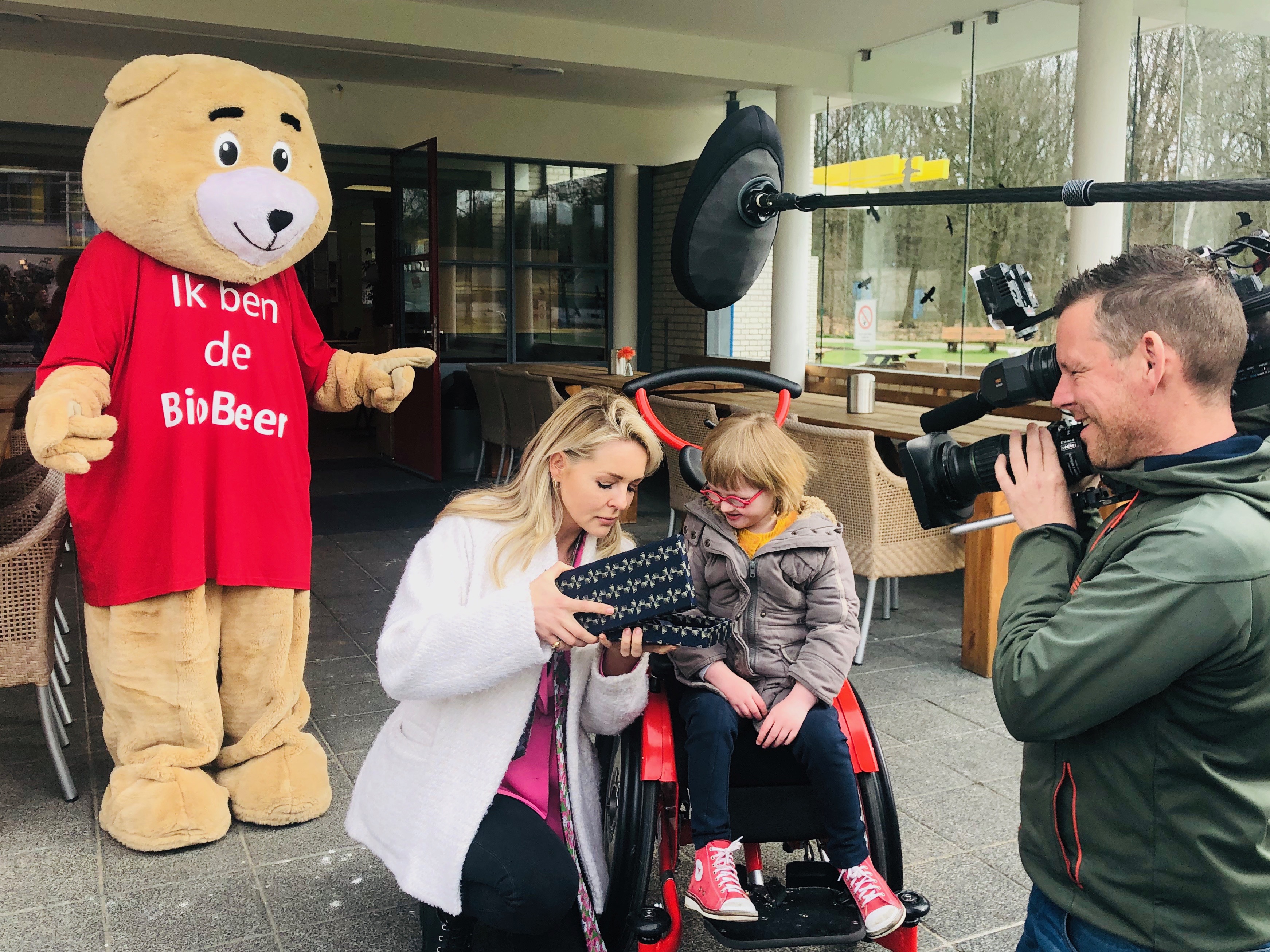 Marcouch en Janzen werden gastvrij onthaald door directeur Frans Wientjes, de voorzitter van de raad van bestuur Johan Lokhorst en uiteraard de BioBeer. Terwijl Chantal niet ontkwam aan de knuffels van onze jonge vakantiegasten, liet de burgemeester zich uitgebreid informeren over het vakantiepark voor gezinnen met een meervoudig gehandicapt kind.