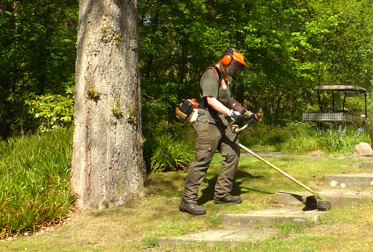 “Ik loop stage bij de tuindienst dus werk mee aan al het buitenonderhoud zoals grasmaaien, snoeien en het onderhoud van de speeltoestellen.”