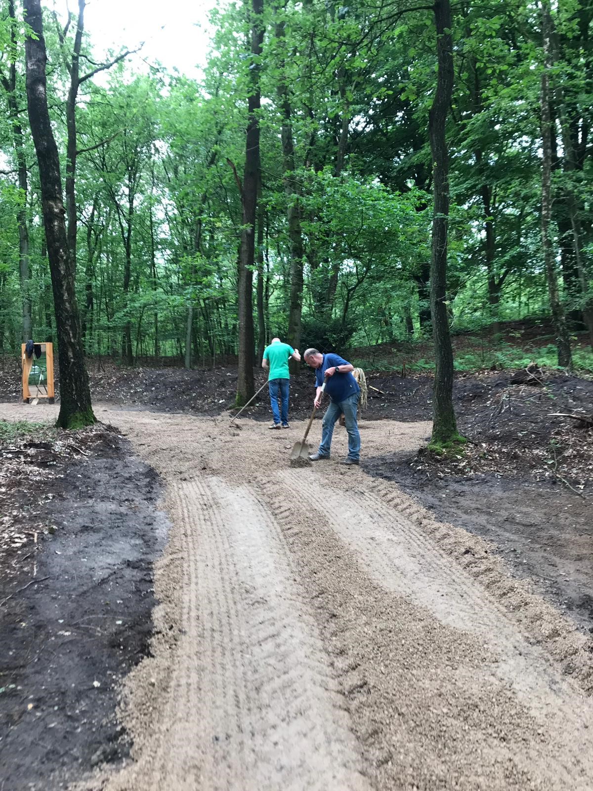 Afgelopen zaterdag heeft de Rotary Arnhem IJssel hard meegewerkt aan de realisatie van begaanbare wegen langs het belevingspad.