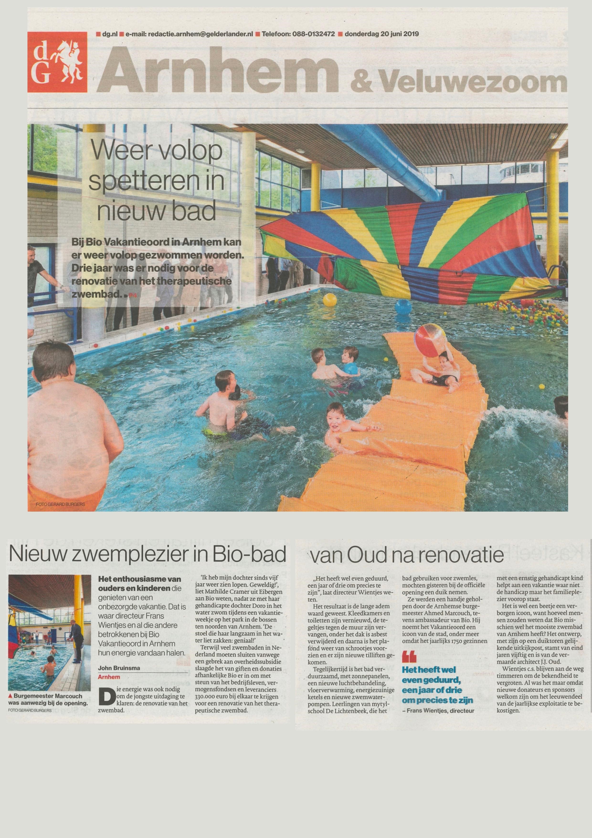 Het was een grote eer dat burgemeester Marcouch aanwezig was en zijn felicitaties uitte vanuit de gemeente Arnhem én vanuit het feit dat hij ambassadeur is van Stichting Bio. Hij verwoordde zijn enthousiasme voor Stichting Bio, dat nog meer is aangewakkerd na de gesprekken die hij recent met vakantiegasten heeft gevoerd. Volgens hem is Stichting Bio één van de trotse iconen van de stad Arnhem en met haar doel van betekenis voor heel Nederland. Marcouch benadrukte het belang van duurzaamheid wat volledig is toegepast bij de renovatie van dit zwembad. Een meer dan trotse ambassadeur eindigde met nogmaals zijn felicitaties over te brengen en de sponsoren hartelijk te bedanken!
